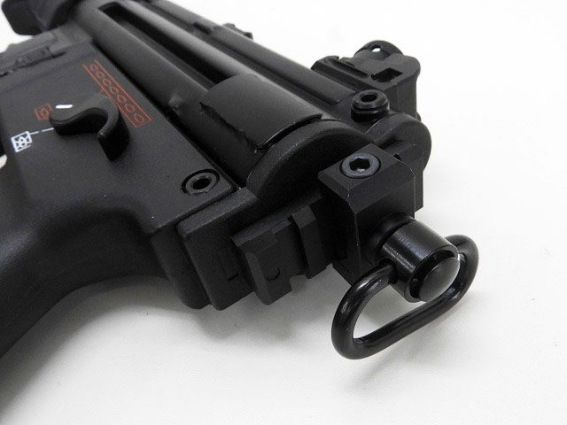 実銃のMP5はドイツ、ヘッケラー&コッホ社の製造する9mm×19拳銃弾を使用するサブマシンガンだ。G3アサルトライフルのローラーロッキングメカニズムを利用したクローズドボルト方式により高い命中精度を誇り、世界各国の特殊部隊や警察、いわゆるローエンフォースメントで使用されている。