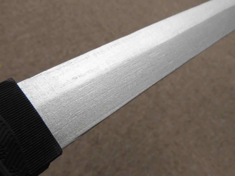 刀身はおそらく木製と思われ、銀色の塗料が塗られています。鍔がうまく固定されておらずぐらついています。また鯉口も甘くなっています。
