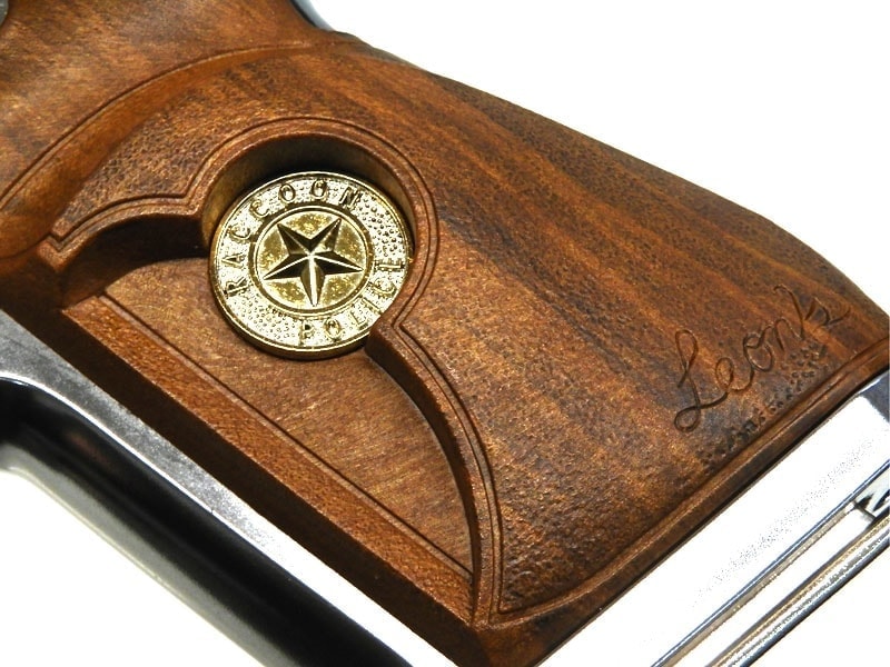 ・R.P.D.(ラクーン・ポリス・デパートメント)特製メダリオン入りのエルゴノミクスデザイン・ウッドタイプ・シューティンググリップ。