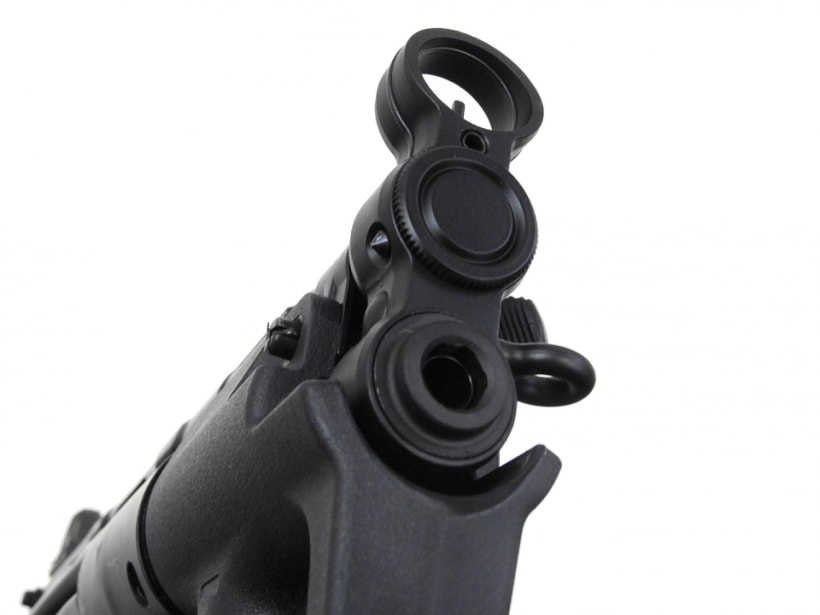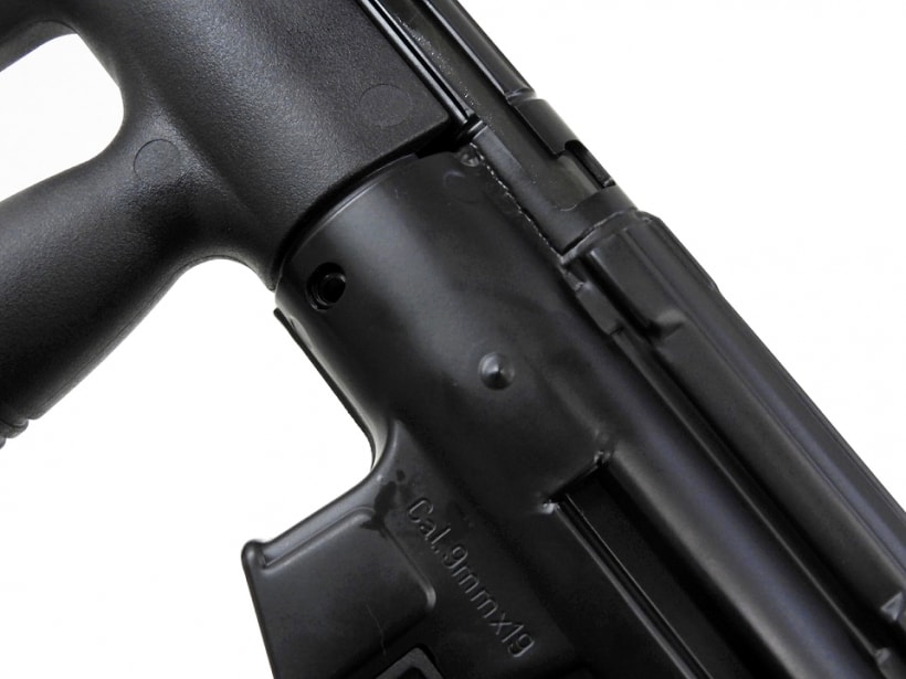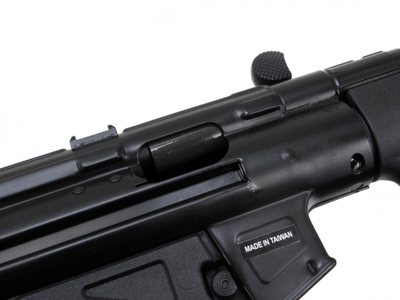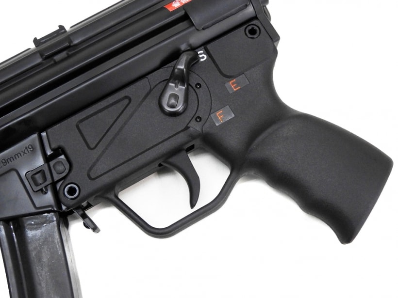 実銃のMP5はドイツ、ヘッケラー&コッホ社の製造する9mm×19拳銃弾を使用するサブマシンガンだ。G3アサルトライフルのローラーロッキングメカニズムを利用したクローズドボルト方式により高い命中精度を誇り、世界各国の特殊部隊や警察、いわゆるローエンフォースメントで使用されている。