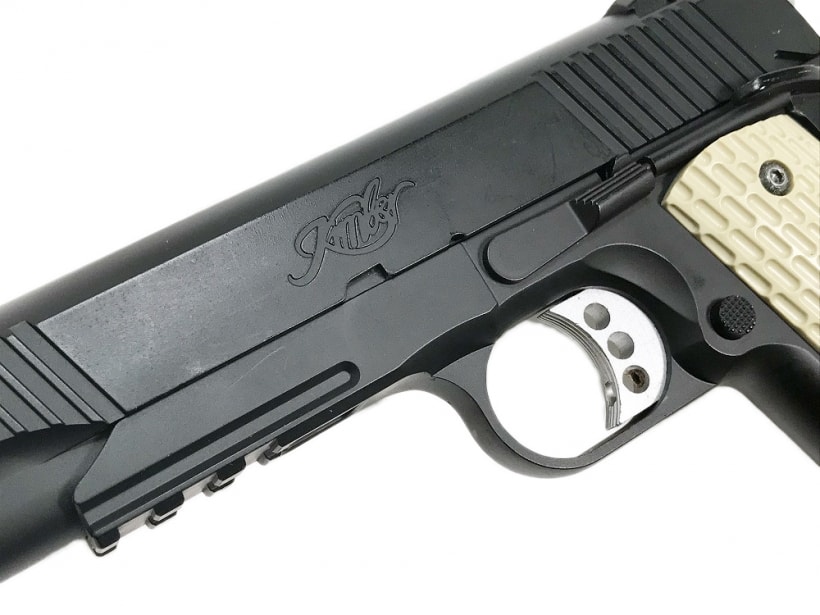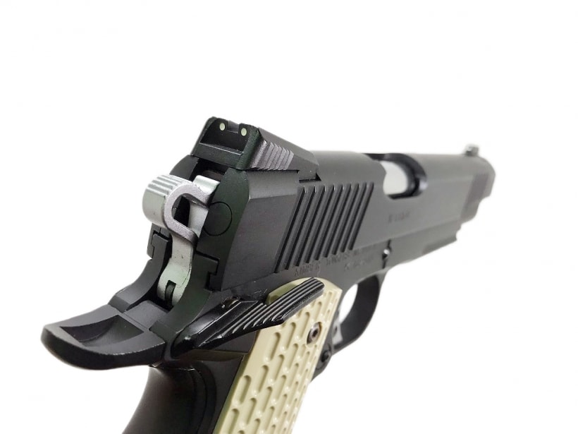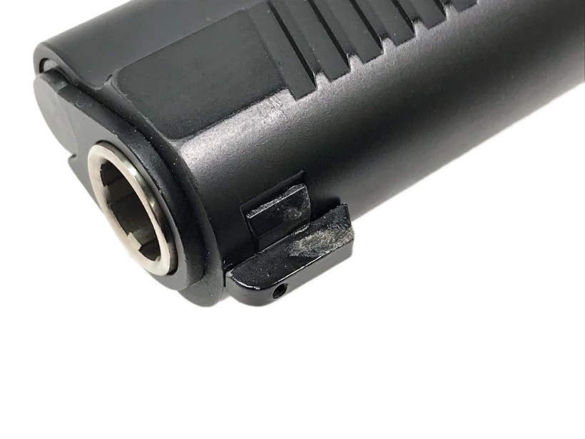 スライド前方のセレーション、ナローサイズのマウントレール、ランヤードリングなどを装備。