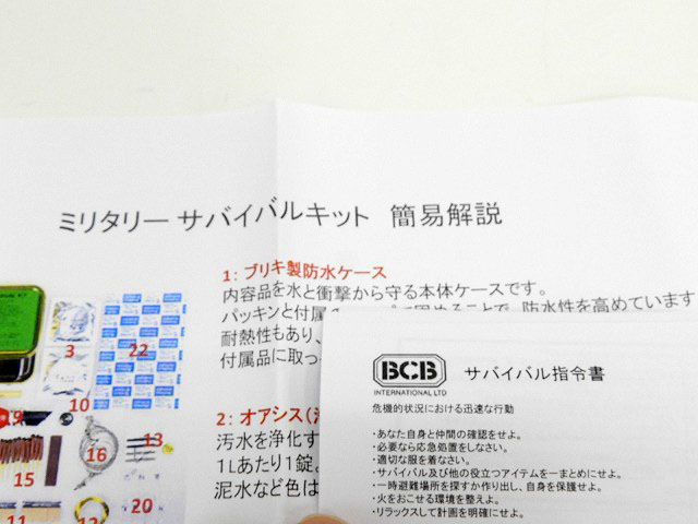 [Bush Craft] ブッシュクラフト SAS採用 BCB ミリタリーサバイバルキット / 25PIECE SURVIVAL KIT (未使用) 製品詳細画像3