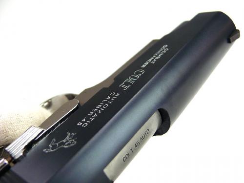 [WA] COLT コンバットコマンダーカスタム ガスブローバック (中古) 製品参考画像3 納得のブルーイングにホワイトレタリング。