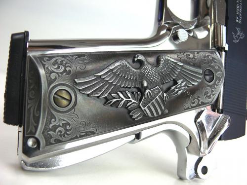 これはもはや使用するというよりも鑑賞モデルと言っていいのではないだろうか。レタリングの入ったブルースライドとクロームメッキフレームの組み合わせは美しく調和が取れており、極めつけのイーグルグリップが全体の重厚感を一気に押し上げている。
