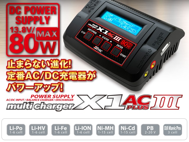 [Hitec] マルチチャージャー X1 ACPLUS3 multicharger 【Li-Po Li-Fe Li-Ion Li-HV Ni-MH 他】 (中古)の販売ページ|エアガン.jp