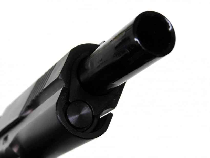 刻印のない黒染め仕様のチャンバーカバーと漆黒のバレルがプロフェッショナルな雰囲気を演出してくれます。