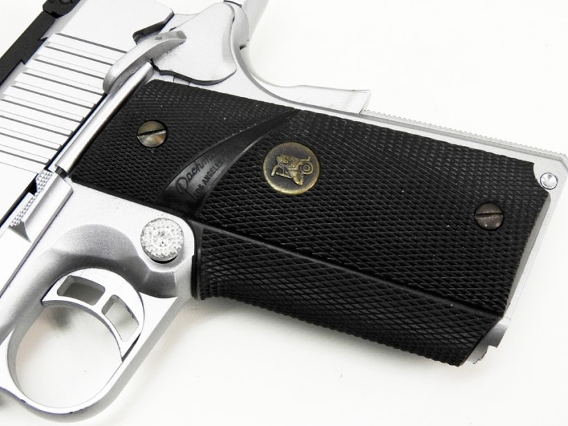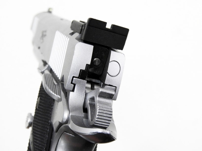 この銃の特徴はまずアジャスタブル・サイトであるということ。これにより細かなサイティングが調整できる。マガジンは小さなバンパーが装着されている。銃自体の動作 ブローバックはとても快調である。シングルカラムのスリムなマガジンであるにもかかわらずブローバックは激しくガツンと響いてくる。知名度は低いがカスタムレースガンの世界では有名であるのでコレクション目的が多いのではないだろうか。 こだわりを持てば実銃のグリップに変更したりリアルな雰囲気を楽しむのもありだ。