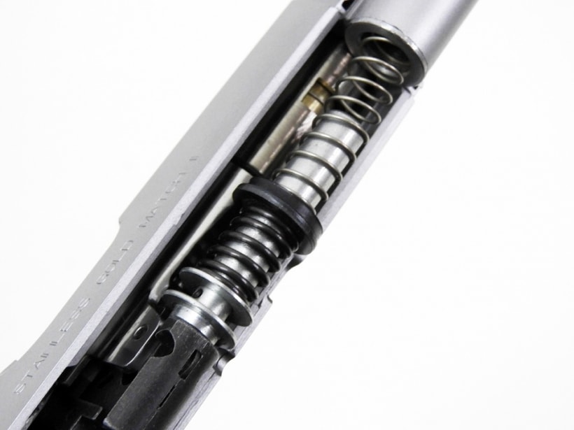 内部のリコイルスプリングアッセンブリーに手を加えられ、ブローバックのストローク量を減らすことによりスライドの戻りが早くなるため非常にレスポンスが良くなっている。