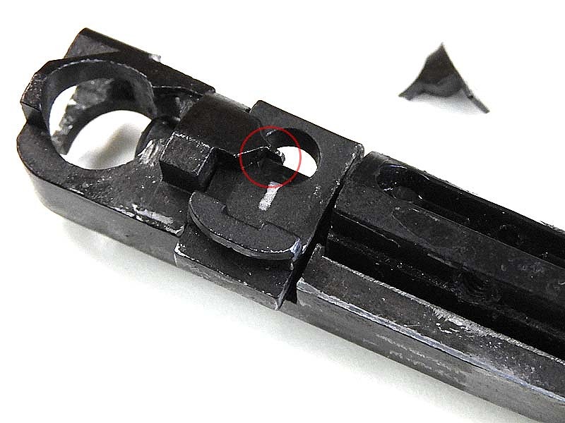 ブリーチブロックの「ファイアリングピン・キャッチにテンションをかけるバネを保持する部分」が欠けてしまっている。