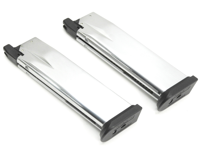 ハンドガンの場合は全体を金属性とする組み換え、エアソフトガンの場合は射出エネルギー0.98J以上にする改造を行うと銃刀法違反となります。HFC134a仕様のガスガンにCO2用マガジンを組み込む、スライドを金属製の物に差し替える等、簡易な改造でも罪に問われる可能性がございますので、絶対にお止めください。