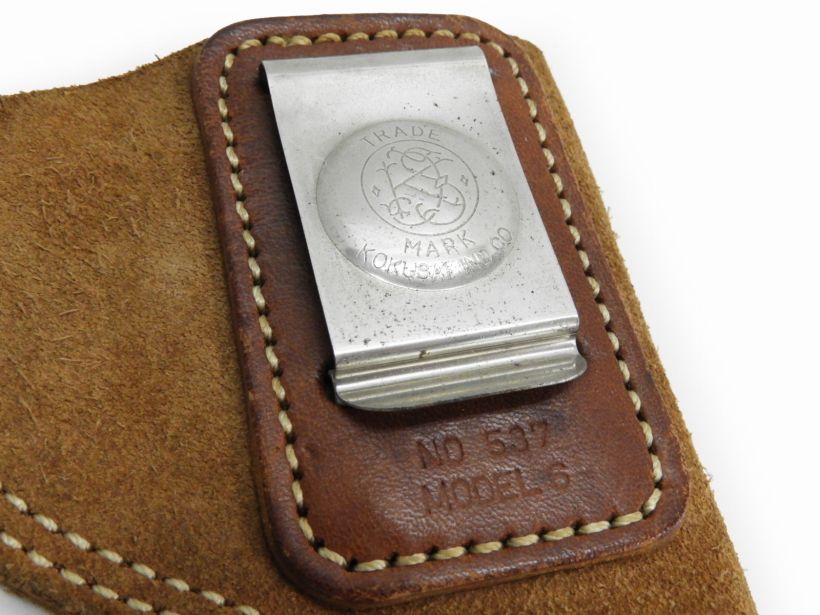 コクサイが製造していた小型のホルスター。外側がスウェードで内側がなめらかな表皮になっています。S&WのJフレームなど小さめのリボルバーにフィットします。