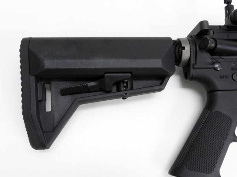 バットストックは、MAGPUL MOE SLタイプを採用。日本専用セッティングにより、HFC134aをはじめとする代替フロンガスでの快調な作動を実現している。