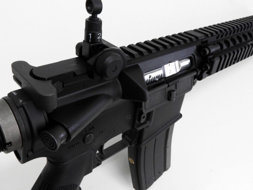 正規ライセンス取得により、RISの刻印はリアルに再現されており、レシーバーの刻印もRISの種類に合わせてしっかり打ち分けられている。