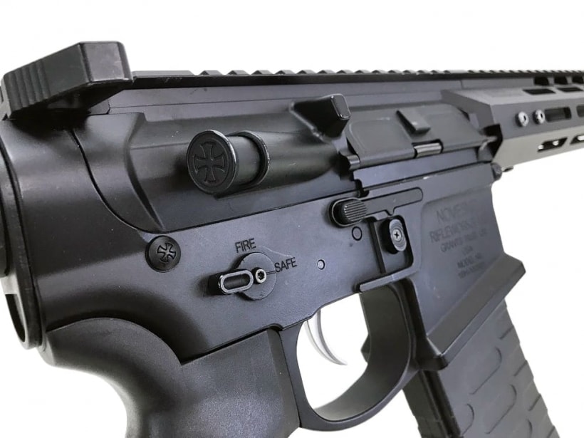 外装は、マガジンキャッチやセレクターがアンビ化された、Noveske刻印入りのメタルレシーバーと、 NSRタイプのM-LOKハンドガードの組み合わせとなっており、 シンプルで機能的なバランスの良い構成。