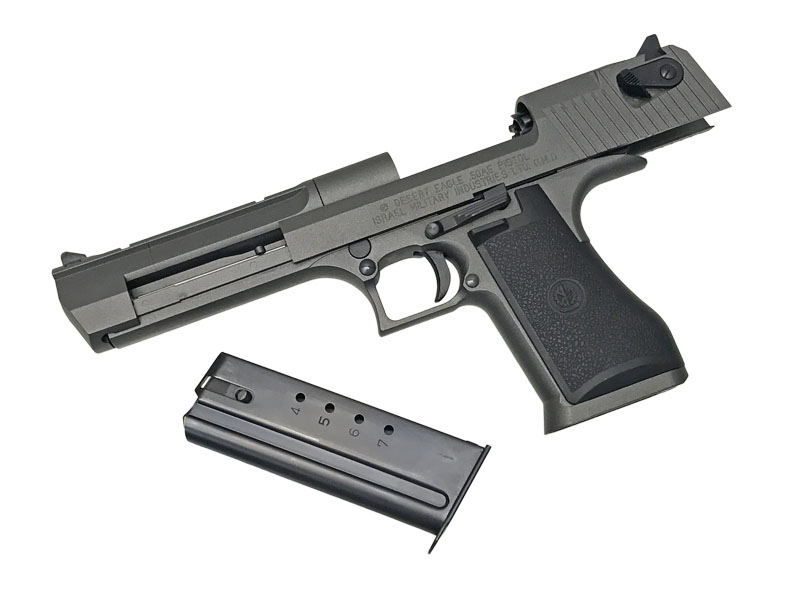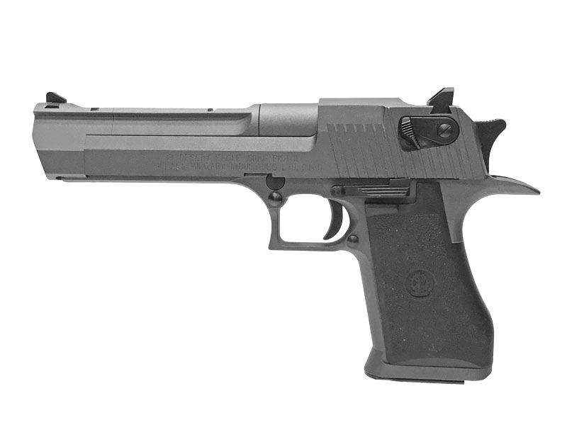 イスラエルのIMI社が生産している超大型自動拳銃。初期は動作不良が多く売れ行きはよくなかったようだが改良が加えられ、市販のリボルバー用44マグナム弾が使用でき1991年には大口径の50AE弾モデルが発表され確固たる地位を築いた。強烈なパワー、衝撃は間違いないが、よく映画などで女子供が撃つと肩の骨が外れるほどの威力があると噂されているが実際は大型スライドが衝撃をおさえそのようなことは起きない。エイリアンVSプレデターなどでも登場する。この銃を向けられたら誰もが底知れない恐怖を味わうことになるだろう。