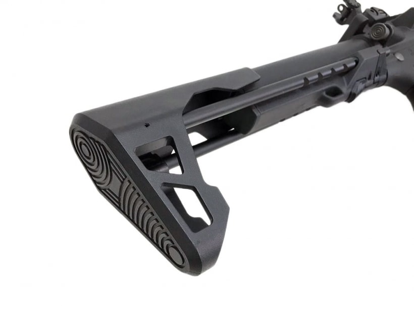 軽量で取り回しの良い伸縮式ストックと3.5インチRASハンドガードを装備した機体は非常にコンパクト。