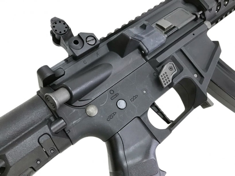 大型で操作しやすいセレクターやマガジンキャッチリリースボタンなども相まって、 取り回しに優れたモデルとなっている。