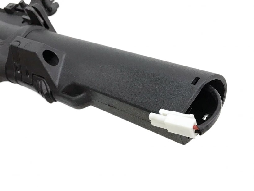 バッテリーはストックを外し、バッファーチューブに収納する。スペースは十分で、ミニバッテリーサイズが使用可能。