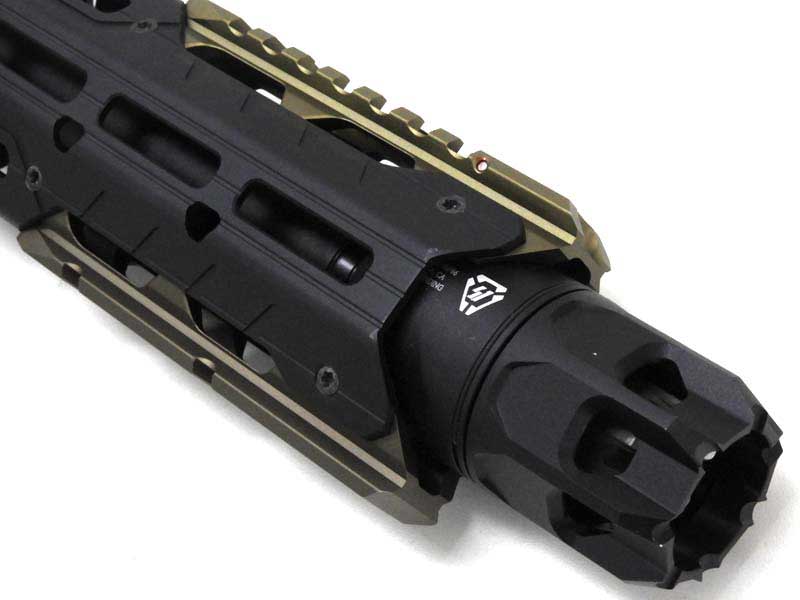 Oppressorデバイスと King Compハイダーを再現したマズルデバイスハンドルが大型化され利き手を選ばず操作できるSIタイプ ラッチレスチャージングハンドル。