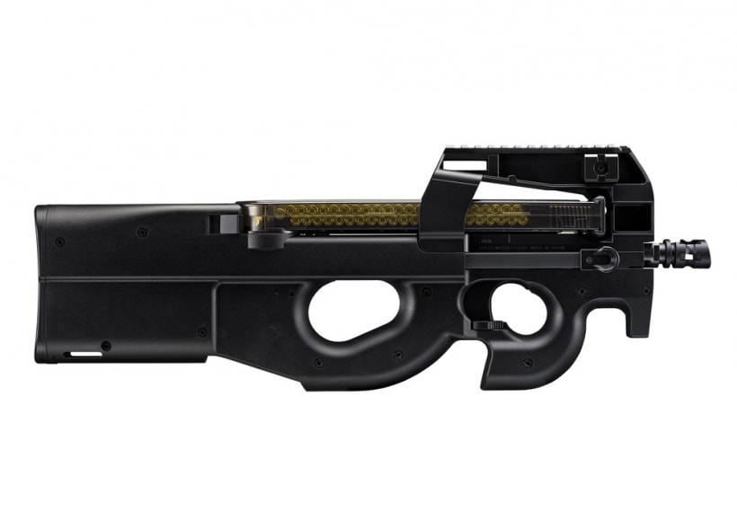 1980年代、ボディアーマーの普及と高性能化により、軍の後方部隊が持つ護身用火器(拳銃、短機関銃)の威力不足がささやかれ始めた。しかし貫通力に優れる突撃銃では、何かとかさばるため携行は難しい。そこでアメリカ軍は『拳銃弾より貫通力に優れ、突撃銃より取り回しの良い銃』の製作を各社に依頼。当時APDWと呼ばれたこの要望に対して、FN社が1987年に要求仕様を満たした銃を開発した。それがPROJECT-90こと「P90」である。P90は幾つもの画期的な特徴を備えている。銃本体はプラスチックを多用したブルパップ形状だが、銃下面に排莢口を設けることで射手の利き手を選ばず、左右臨機応変に構えなおすことを可能にしている。また、マガジンは50発というハイキャパシティながら、レシーバー上部に銃身と平行に配することで、本体から大きく張り出すことなくコンパクトにまとめられている。弾丸は横向きに複列装弾されているが、バネによって90度回転させることで本体薬室に送弾する。さらに、P90は新規開発したSS90(後にファイブセブンと弾の共通化をはかったSS190)弾を採用している。この弾はライフル弾を短小化したようなボトルネック形状をしており、サイズこそ拳銃弾並だが貫通力に優れる。さらに人体などの柔らかい物体に命中すると、弾が横転して衝撃を物体に最大限伝えようとする性質が有るためストッピングパワーも優れ、拳銃/ライフル弾両方の利点を兼ね揃えたものとなっている。1996年にペルーで発生した日本大使館占拠事件において、ペルー軍、警察の突入部隊の一部がP90を使用していた事で知名度も高まり、室内戦闘が多い特殊部隊用の火器としても注目されている。
