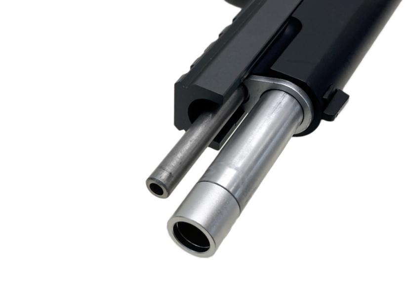 アウターバレルには、14mm正ネジのアタッチメントを持つアルミ製パーツを採用。市販のサイレンサー等を取付けて楽しむ事が可能です。