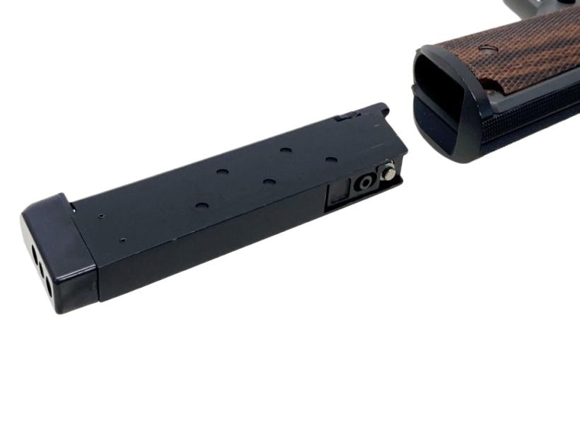 ハンドガンの場合は全体を金属性とする組み換え、エアソフトガンの場合は射出エネルギー0.98J以上にする改造を行うと銃刀法違反となります。HFC134a仕様のガスガンにCO2用マガジンを組み込む、スライドを金属製の物に差し替える等、簡易な改造でも罪に問われる可能性がございますので、絶対にお止めください。