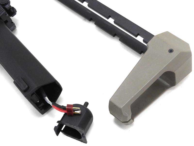 [ダブルイーグル] ハニーバジャー by Q SBR メタルハンドガード 電動ガン フルカスタム (中古) 詳細画像 バッテリーコネクターはTコネクタータイプ。