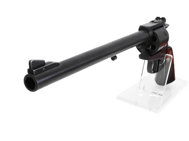 大型シングルアクションリボルバーの銘銃。8mmBB仕様。ノンフルートシリンダーや後部が角張ったトリガーガードなど特徴的。バックストラップ、トリガーガードは金属製で重量感と堅牢さアップに貢献。握った時の冷たさも雰囲気を高める。ローディングゲートを開くだけでシリンダーがフリーになる、実銃と同様の機構を再現。