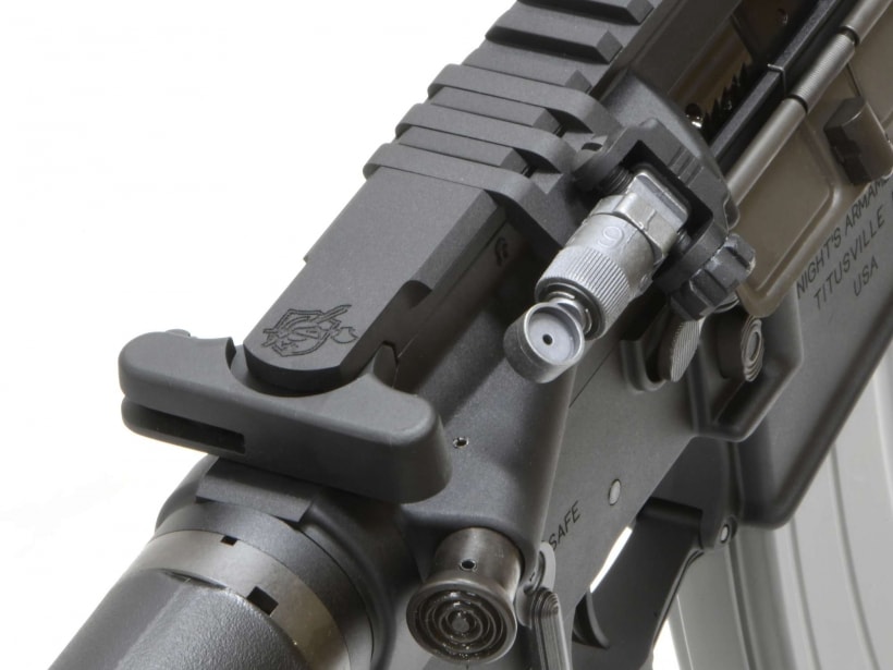 アメリカ軍特殊部隊用に様々な装備を開発してきたナイツ・アーマメント社のM16、それがストーナーズ・ライフル「SRシリーズ」。7.62mm×51弾を使用するナイツ社のM16・SR-25に対し、5.56mm×45弾を使用するSR-16は、コルト社のM4A1カービンに相当するモデルと言える。素材の選定からパーツ精度までこだわりぬいて作られたSR-16は、コルト社の通常軍用モデルとは一線を画する仕上がりで、特殊部隊の精鋭達から尊敬と畏怖をこめて「ブラックナイツ(=黒騎士)」と呼ばれているという。