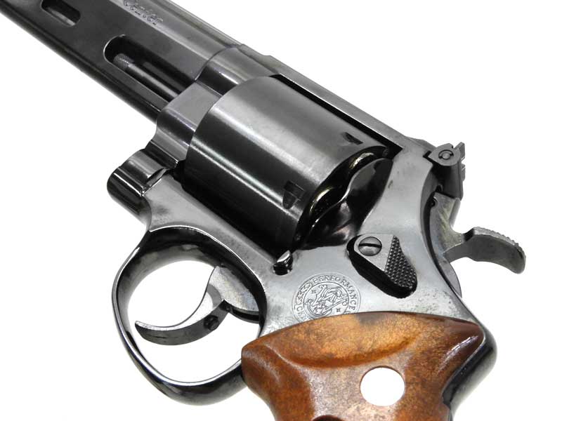 1956年に スミス&ウェッソン社が開発した.44口径の回転式拳銃。狩猟用として開発された.44Magnum弾を、対人用に振り替えたもの。  当時史上最大の大口径銃として売り出され、映画「ダーティハリー」においてクリント・イーストウッド演じる主人公ハリー・キャラハンが使用して一躍有名になった。4インチから8-3/8インチまで、バレル長の異なる4つのモデルがあり、またM27、28の様な大型のフロントサイトとテーパードバレルを持つ「M29 マウンテンガン」や3インチ短銃身モデルの「M629ES」などのバリエーションがある。 このM629はパフォーマンスセンターカスタム。