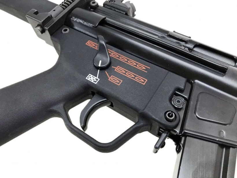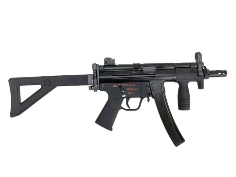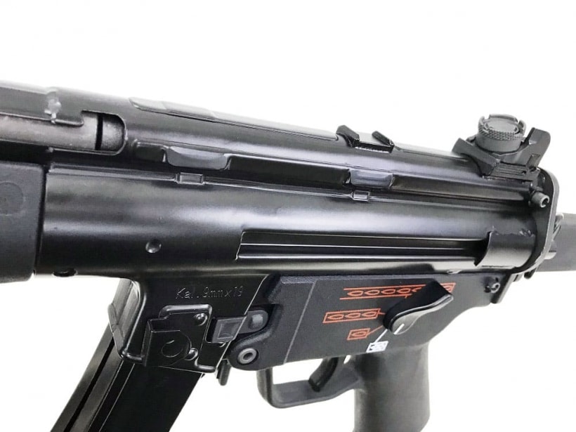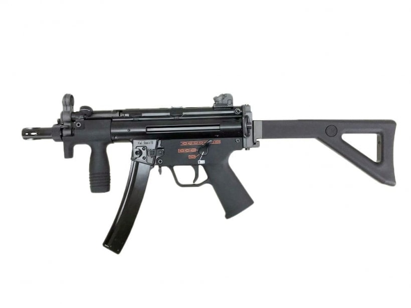 実銃のMP5はドイツ、ヘッケラー&コッホ社の製造する9mm×19拳銃弾を使用するサブマシンガンだ。G3アサルトライフルのローラーロッキングメカニズムを利用したクローズドボルト方式により高い命中精度を誇り、世界各国の特殊部隊や警察、いわゆるローエンフォースメントで使用されている。