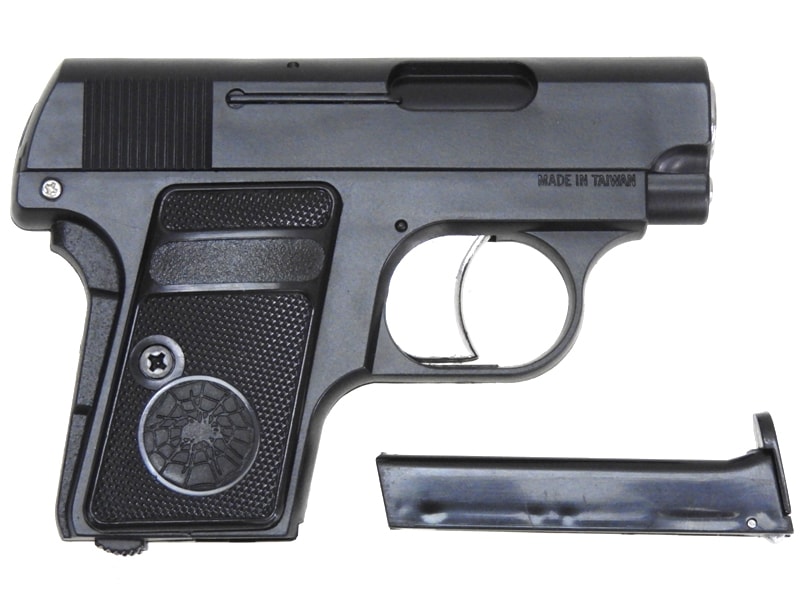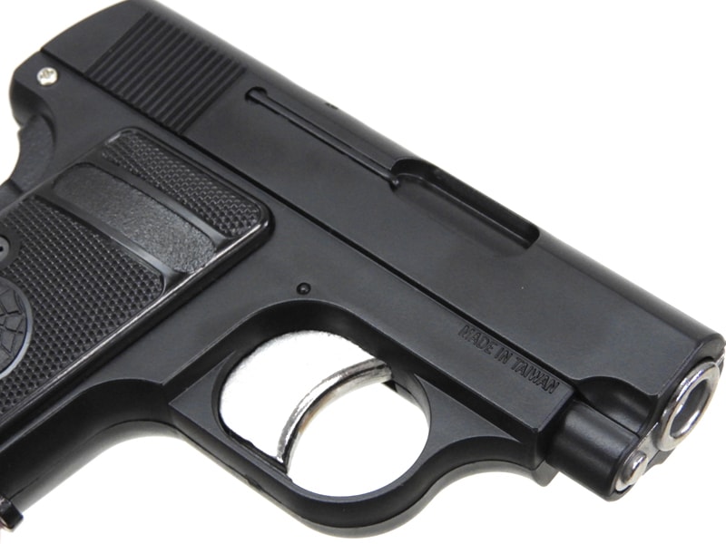 ベルギーのFN「M1906」をベースとしてコルトが米国で販売したモデルであるコルト「Model.1908 Vest Pocket」を台湾HFCがモデルアップ。最中式のシンプルな構造ながら、パワフルな初速を実現している。樹脂ヒケのないきれいなスライド、可動式のセーフティ、エキストラクターは別体パーツになっている等細かい芸がうれしい一品