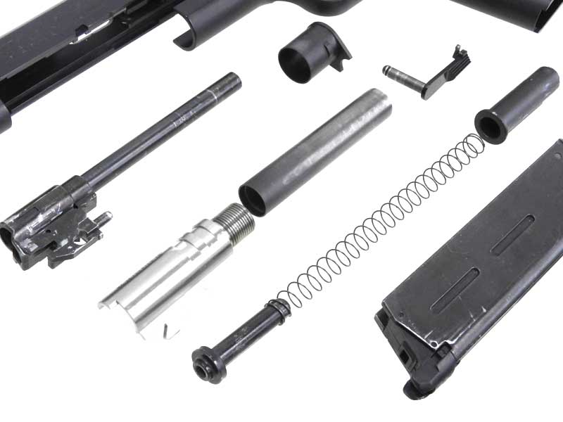 ハンドガンの場合は全体を金属性とする組み換え、エアソフトガンの場合は射出エネルギー0.98J以上にする改造を行うと銃刀法違反となります。HFC134a仕様のガスガンにCO2用マガジンを組み込む、スライドを金属製の物に差し替える等、簡易な改造でも罪に問われる可能性がございますので、絶対にお止めください。