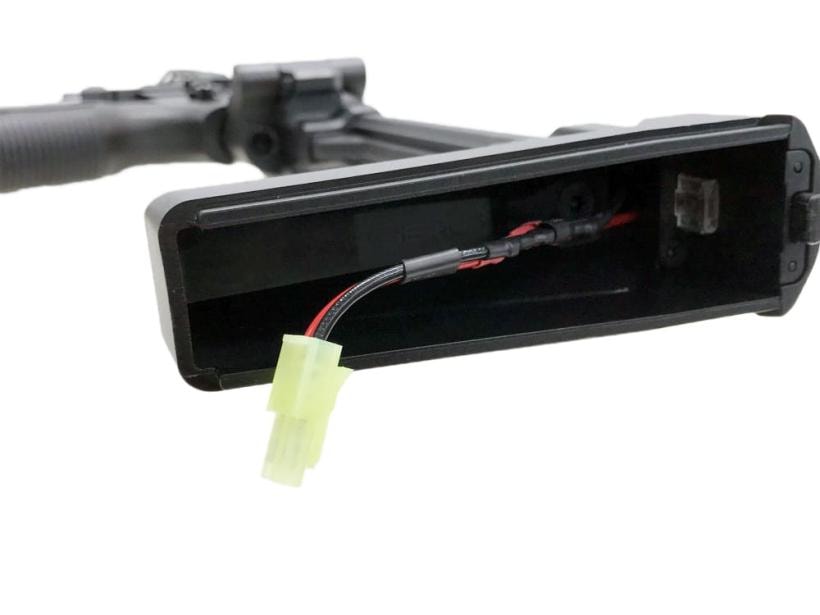 ギアボックスに MOSFET を格納することにより、ストック内のバッテリーコンパートメントを確保