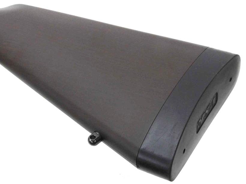 伝統的なスナイパーライフルを思わせる、美しい木目調のストックを採用しています。また、ストックの前後には別売のバイポッドやスリング装着のためのスリングスイベルを取り付け可能です。