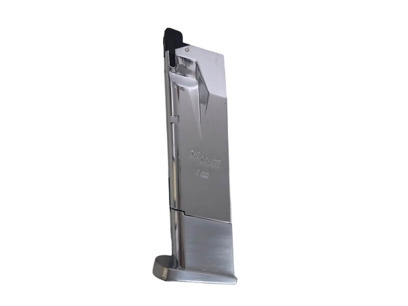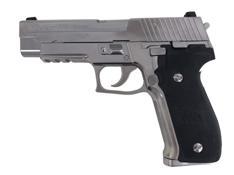 シグザウエル社によって製作された、9ミリパラベラム弾を使用する中型オートピストル。激しいホルスターアクションにも耐えられるクロームステンレスメッキモデル!