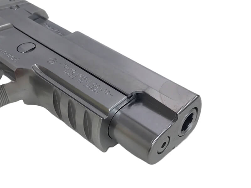 シリーズ初となるデコッキング機能がついているようです。ここまできたら本当に実銃の動きとかわりませんね。キラキラに輝くステンレスシルバー!完成度は高いです。