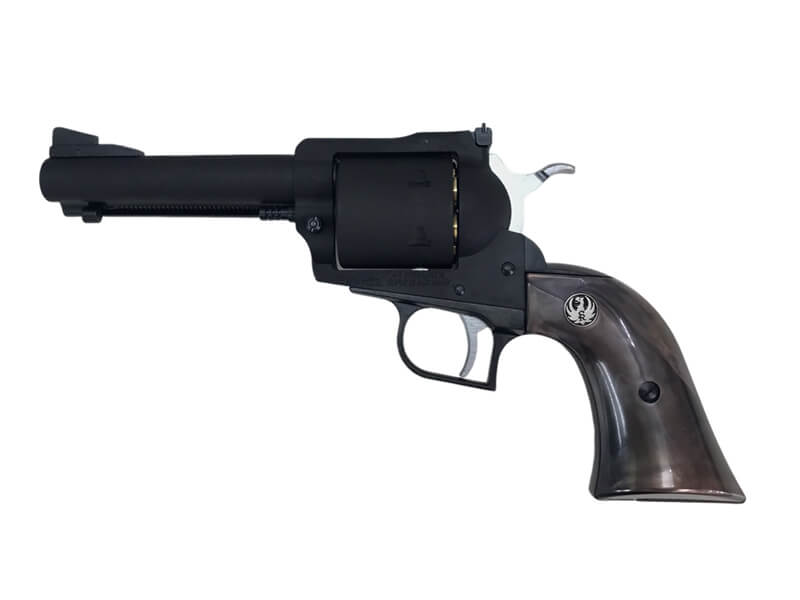 人気のスタームルガー社、44マグナム仕様のシングルアクションリボルバー スーパーブラックホーク!多くの要望に応えて取り回しのよい4.62インチシリーズ登場!!一番人気のブラックHW