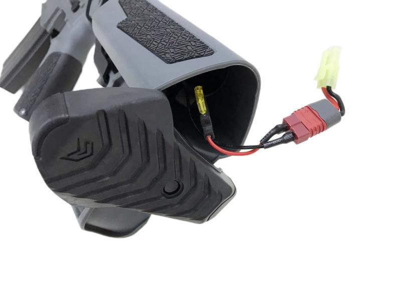 [ICS] Daniel Defense MK18 S3 グレー 電動ガン ICS-180S3-1 マガジン変更 (中古) 製品詳細画像9 バッテリーはストック内収納ミニコネクター