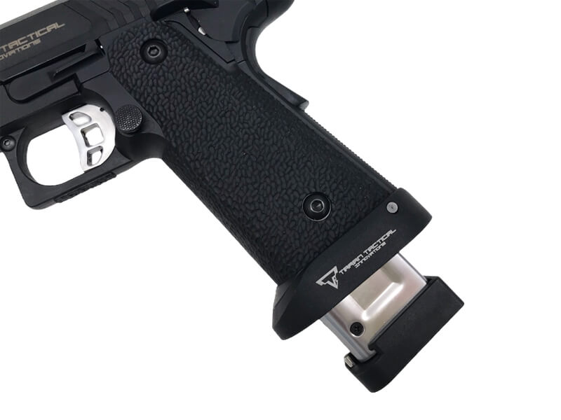 ハンドガンの場合は全体を金属性とする組み換え、エアソフトガンの場合は射出エネルギー0.98J以上にする改造を行うと銃刀法違反となります。HFC134a仕様のガスガンにCO2用マガジンを組み込む、スライドを金属製の物に差し替える等、簡易な改造でも罪に問われる可能性がございますので、絶対にお止めください。