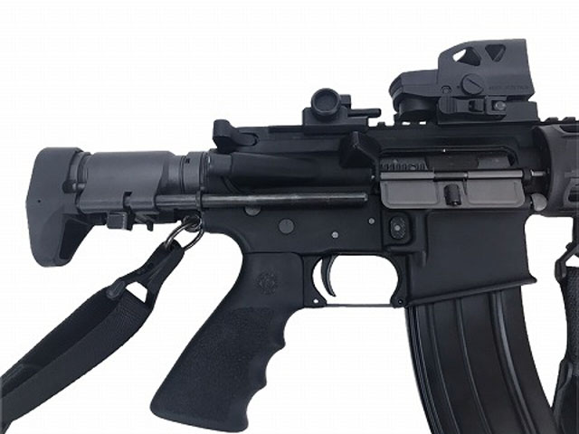 [WE] R5C-AIR GBB TYPE ホーググリップ/VECTORドットサイト ガスブローバック (中古) 製品詳細画像 ストック伸長時