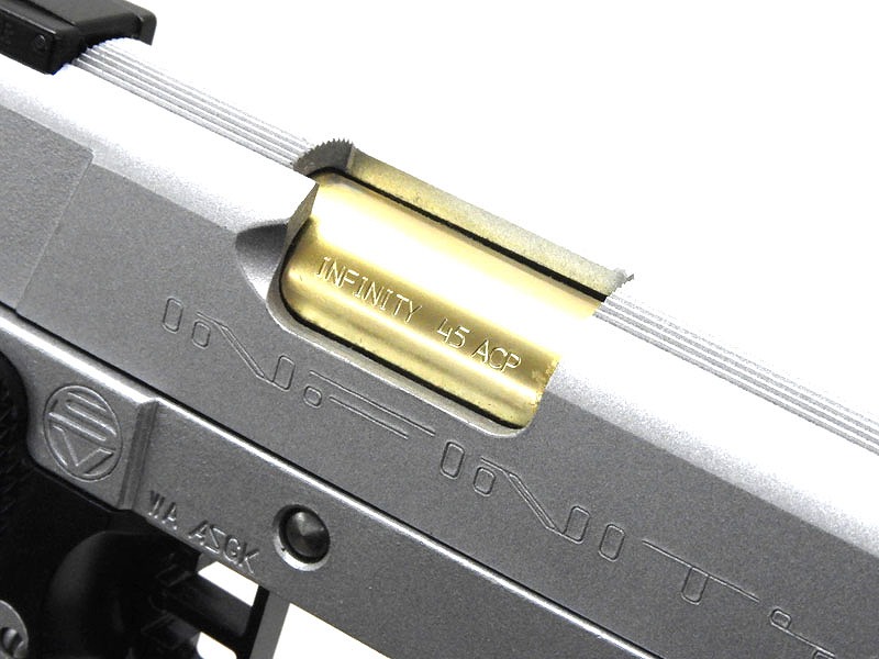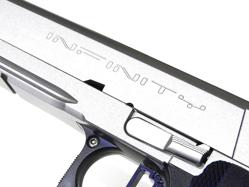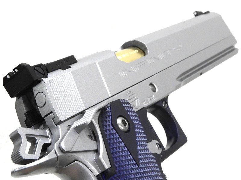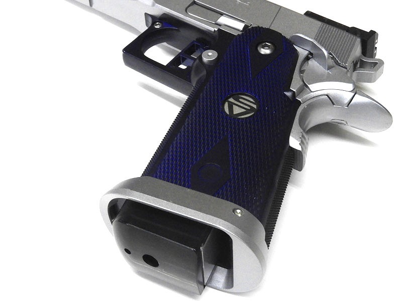 コルトガバメントのメカニズムを母体に、大型の複列弾装を装備するカスタムガン、ハイキャパシティ45オートを製造する米国のストレイヤーヴォイト社が創り出した超現代的デザインのカスタムガン。