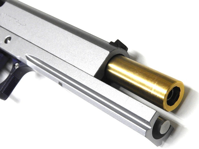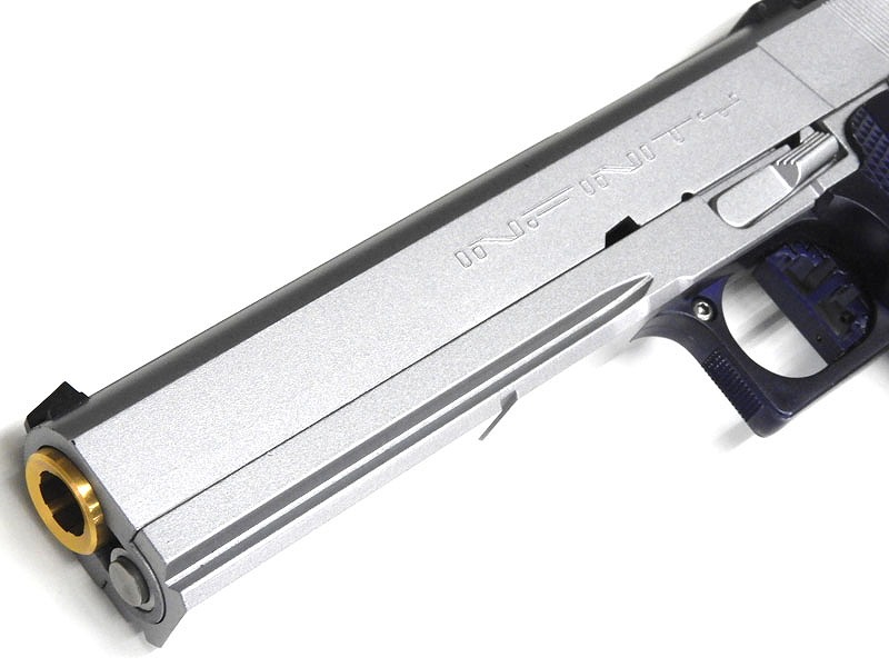 WA 渋谷カスタムワークス(SCW)限定品。ストレイヤーヴォイト社のカスタムレースガン。マルイのデザートイーグルと比較されるほどブローバックの強さは最強クラスで、特に6インチはスライドの重さがあるためキックが強い。希少なパープルモデル。3種類の交換用トリガーシューが付属する。