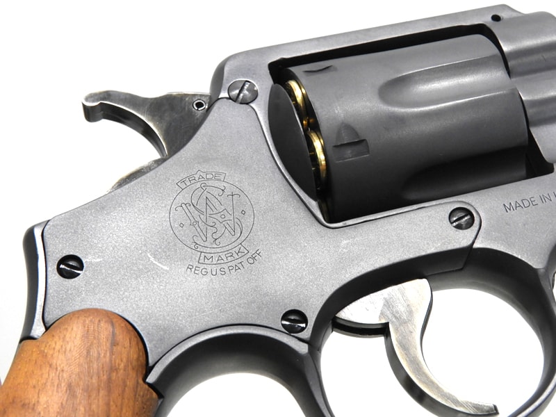 第二次大戦中に製造された軍用リボルバーをモデルアップ。ウォルナット木製クラシック・グリップ標準装備で、ファン垂涎の一丁。