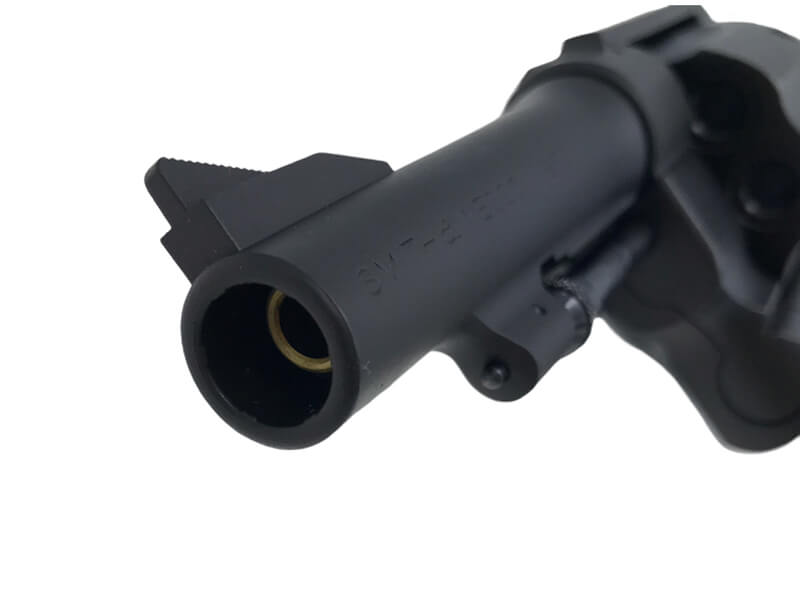 プロップの特徴である4インチに変更されたバレルに、チェッカーグリップとランヤードリングを装備します。