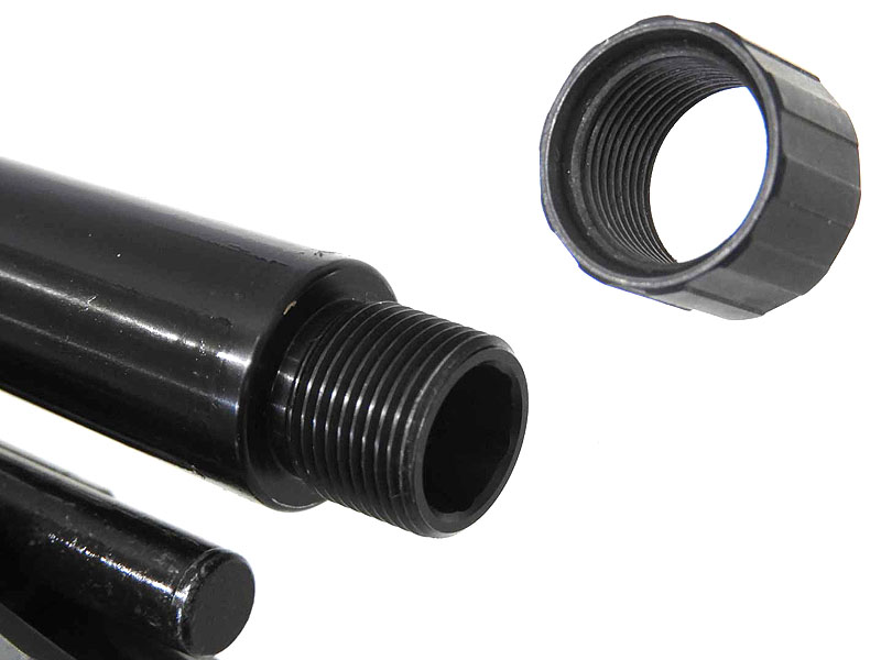 実銃でも使用されているDLC表面処理(ダイヤモンドライクカーボン)が施されたスレッドつきコーンブルバレル。