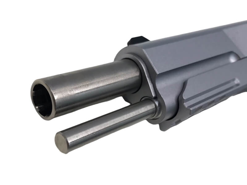 スラリと伸びたスライド先端には、フロントサイトをガッチリ固定。