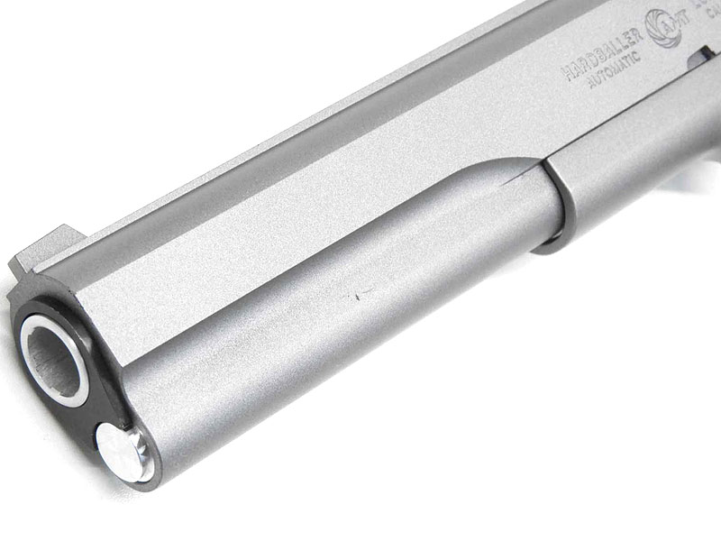 ハードボーラーは、コルト・ゴールドカップをソースにしたターゲットモデルとしてデザインされていることから、スライドトップには反射防止のリブが設けられ、フロントサイトは大型のパートリッジタイプを採用しているのが特徴となっている。スライド&フレームをはじめとして各部パーツの仕上はロストワックス製法を多用したといわれる実銃のブラッシュドステンレスの質感を再現したダークなグレイッシュトーンで統一されている。
