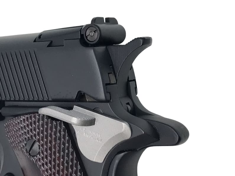 スライドが非常に滑らかにサンディングされ、丸みを帯びている。これにより携帯性に優れ、引っかかることなくスムーズに取り出せる。また、エジェクションポート側にはベルトクリップがついており、ホルスター無しでもベルトなどに引っ掛けて携帯することができる。