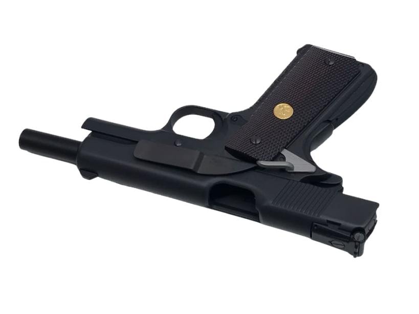 ハンドガンの場合は全体を金属性とする組み換え、エアソフトガンの場合は射出エネルギー0.98J以上にする改造を行うと銃刀法違反となります。HFC134a仕様のガスガンにCO2用マガジンを組み込む、スライドを金属製の物に差し替える等、簡易な改造でも罪に問われる可能性がございますので、絶対にお止めください。